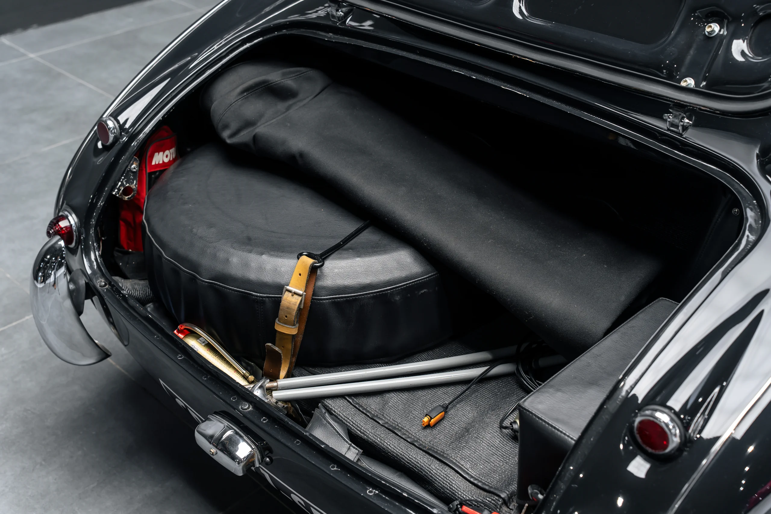 Cette Healey a bénéficié d’une préparation mécanique complète réalisée par Dennis Welch, référence mondiale pour les pièces performance de la marque. La mise au point finale a été effectuée par Éric Perroux, sommité reconnue dans le monde Austin Healey.