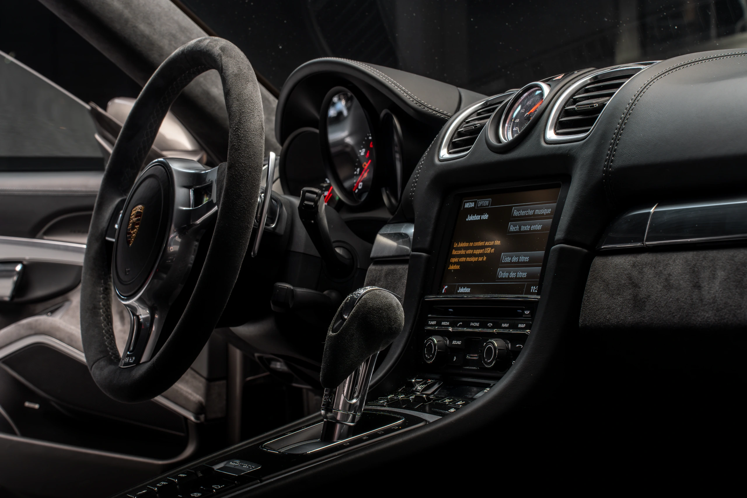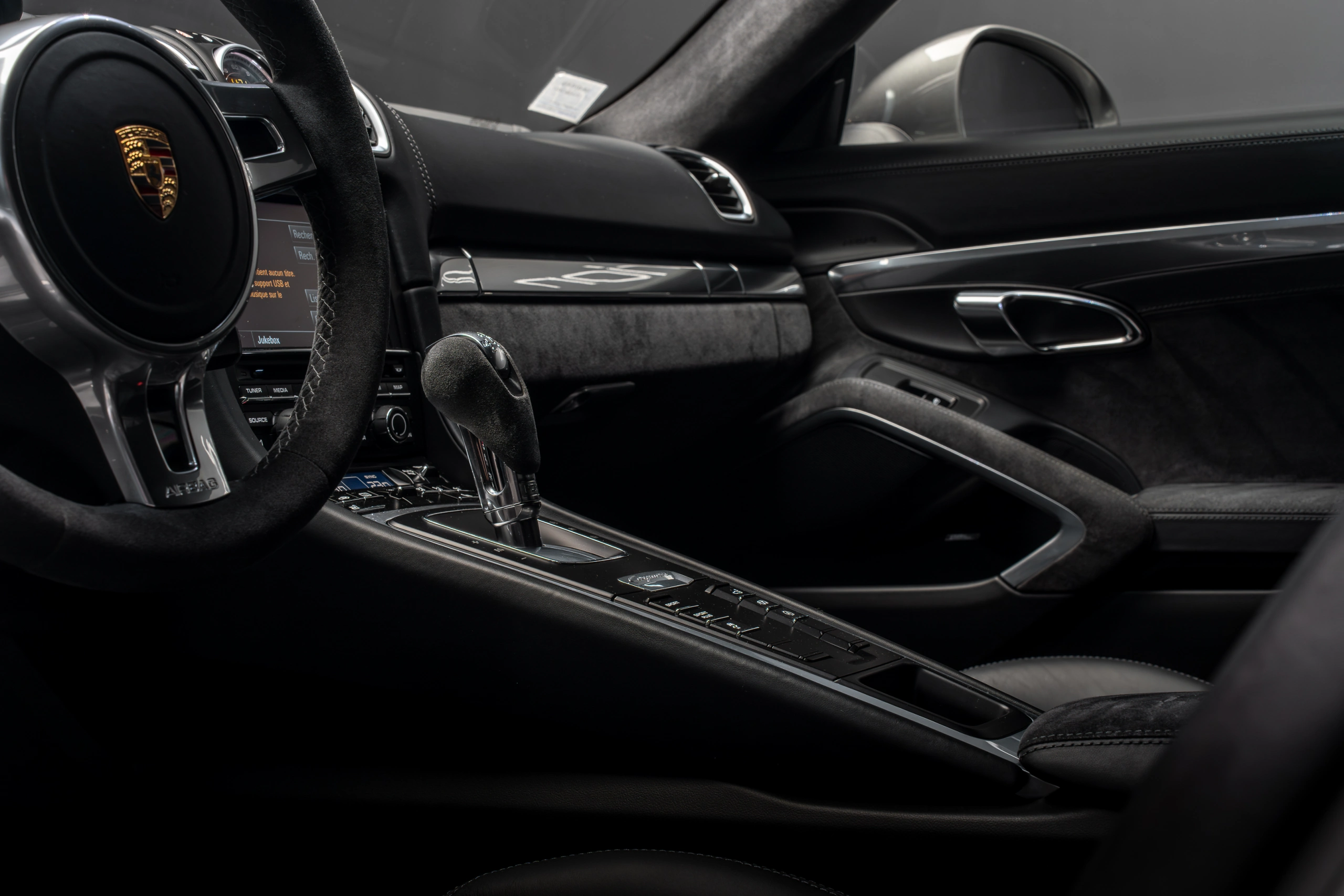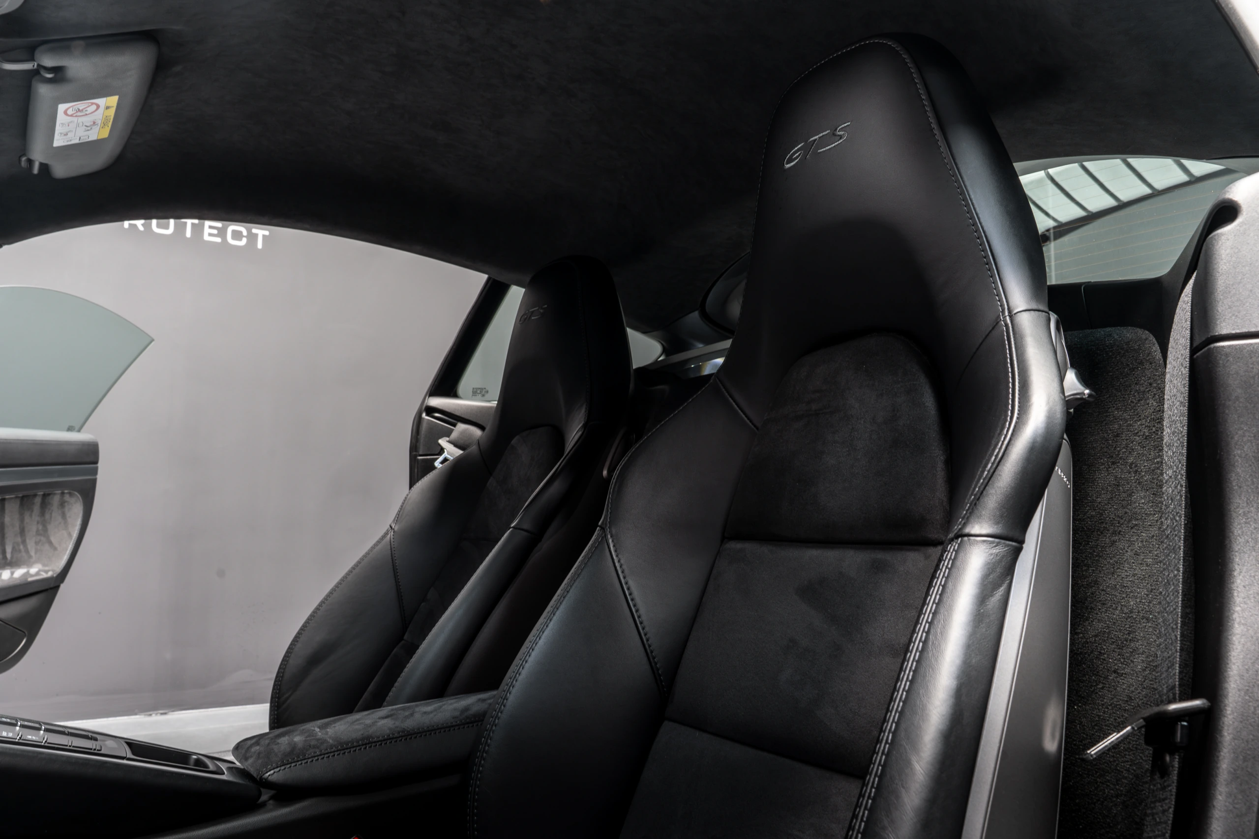 Sellerie cuir et Alcantara GTS avec surpiqûres contrastées